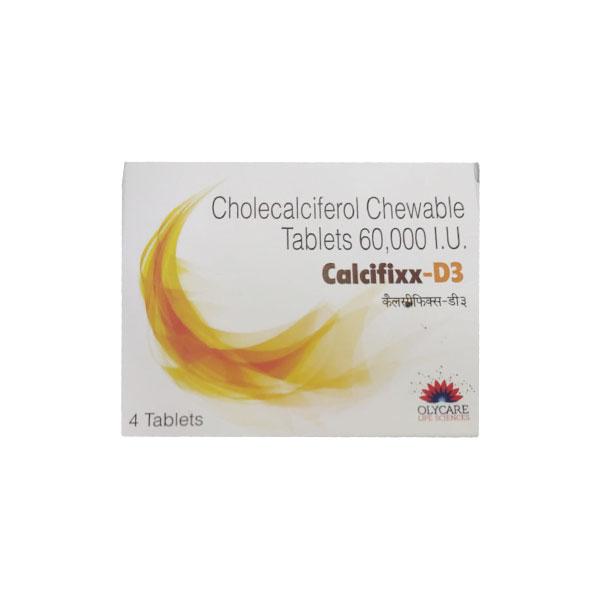 CALCIFIXX D3 CHEWABLE TABLET contains Cholecalciferol (Vitamin D3) which belongs to the group of medicines called Vitamin D analogs. It is used to manage Vitamin D deficiency. This may occur when your diet or lifestyle does not provide you enough vitamin D or when your body requires more vitamin D during pregnancy.